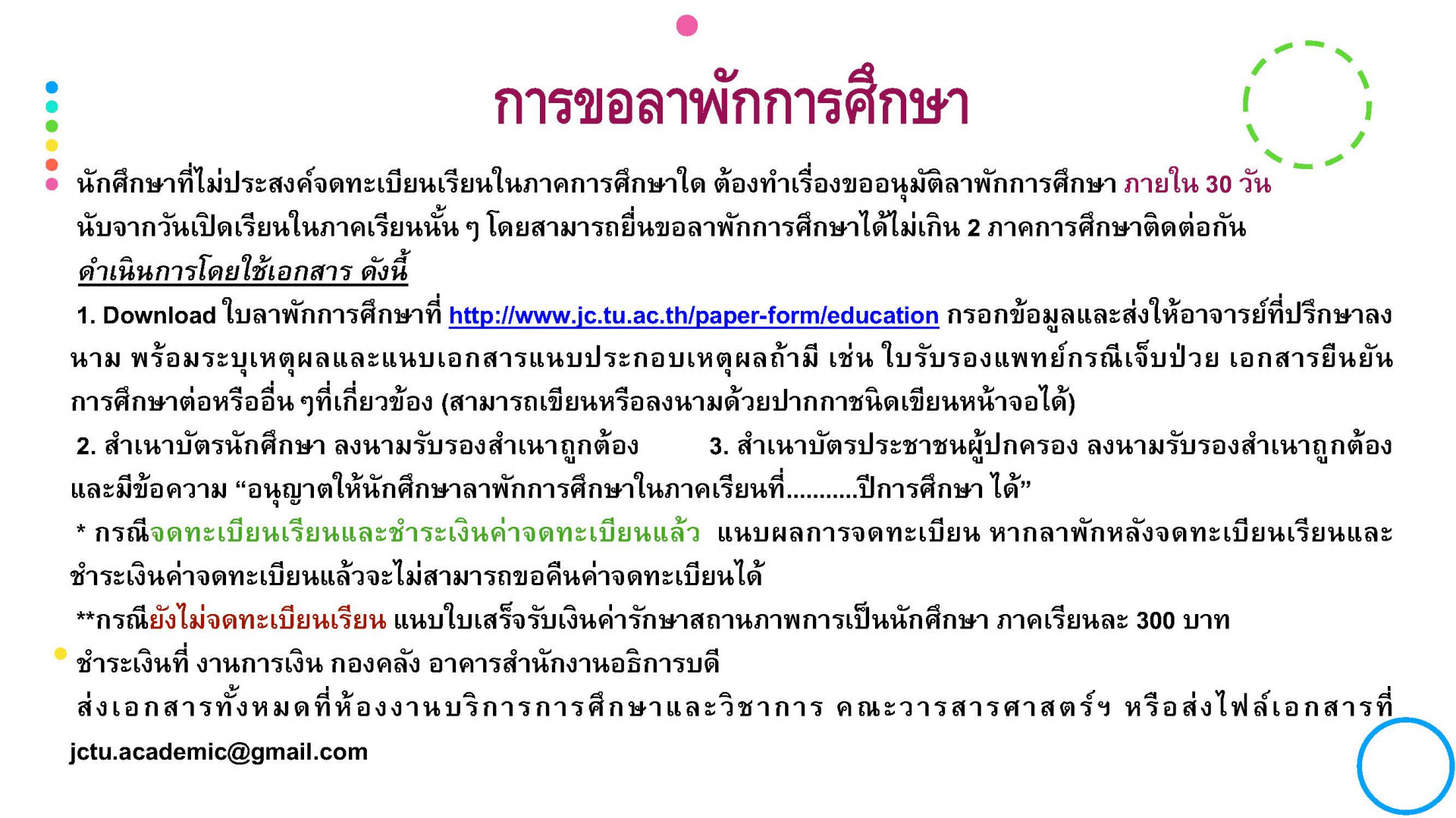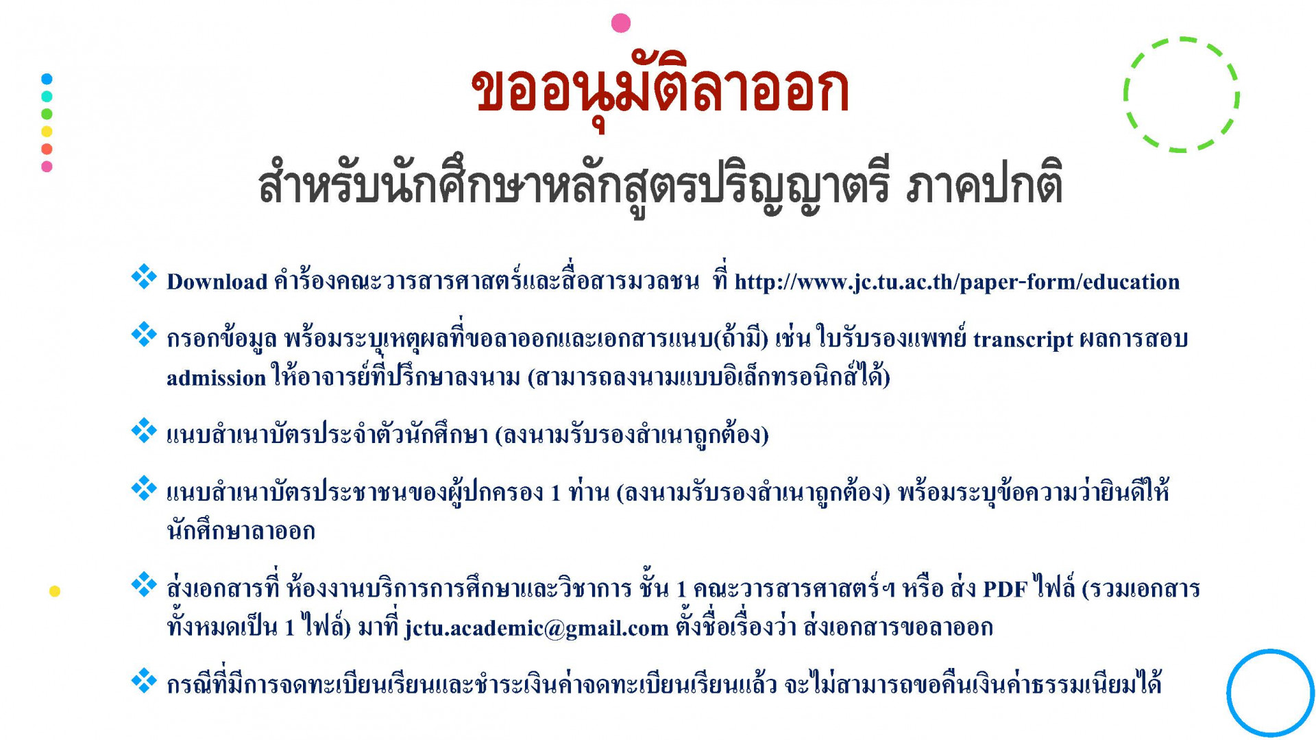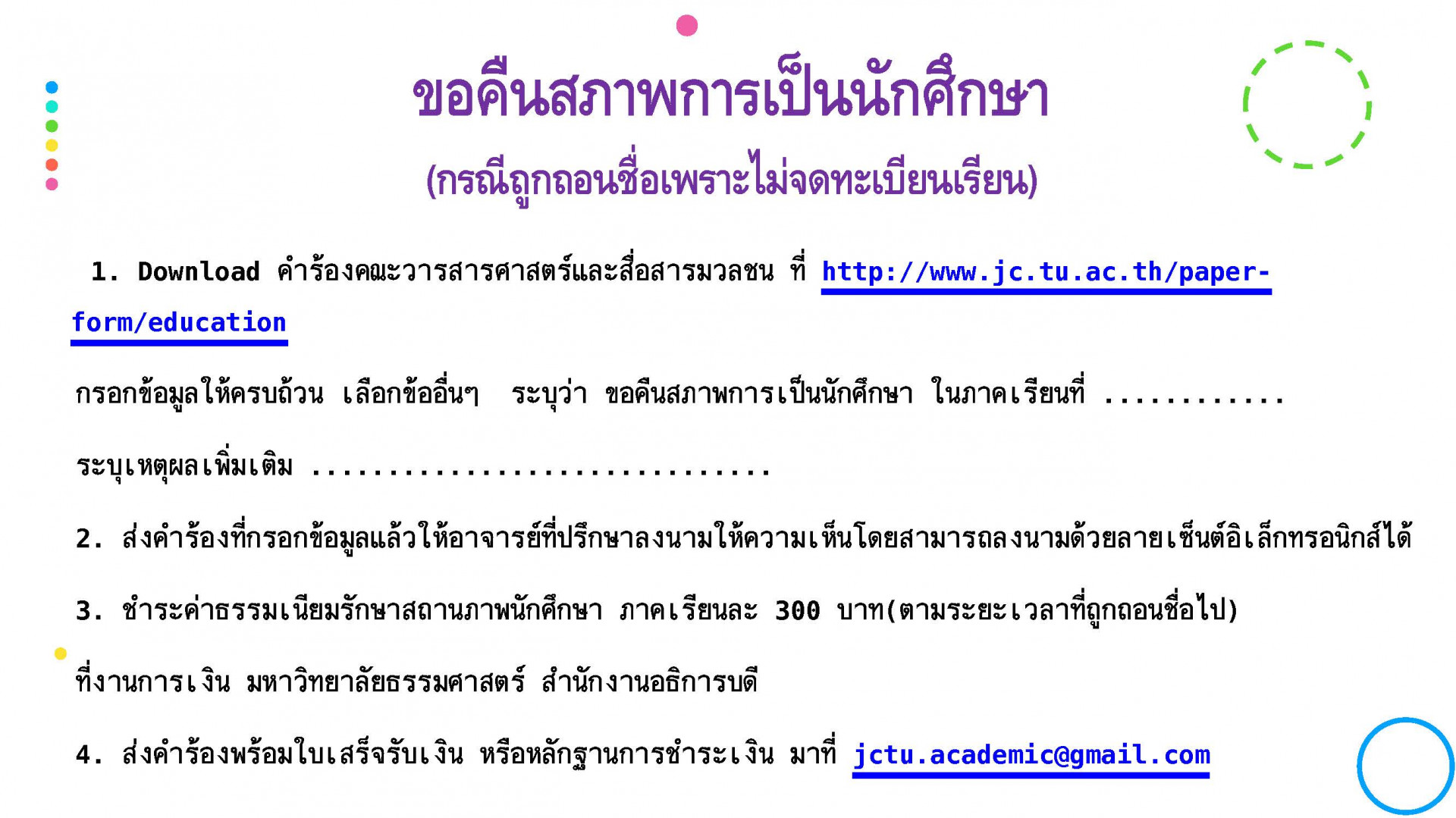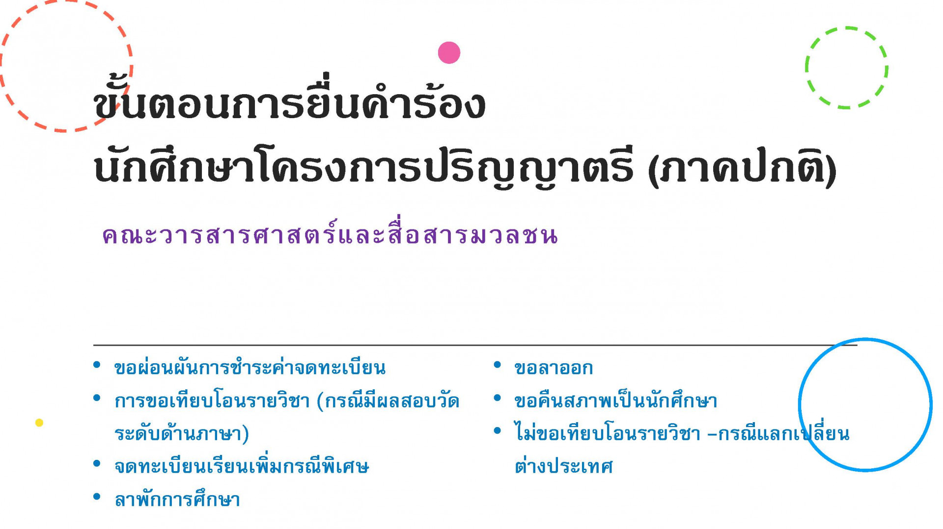 ขั้นตอนการยื่นคำร้องกรณีต่างๆ เกี่ยวกับการเรียน