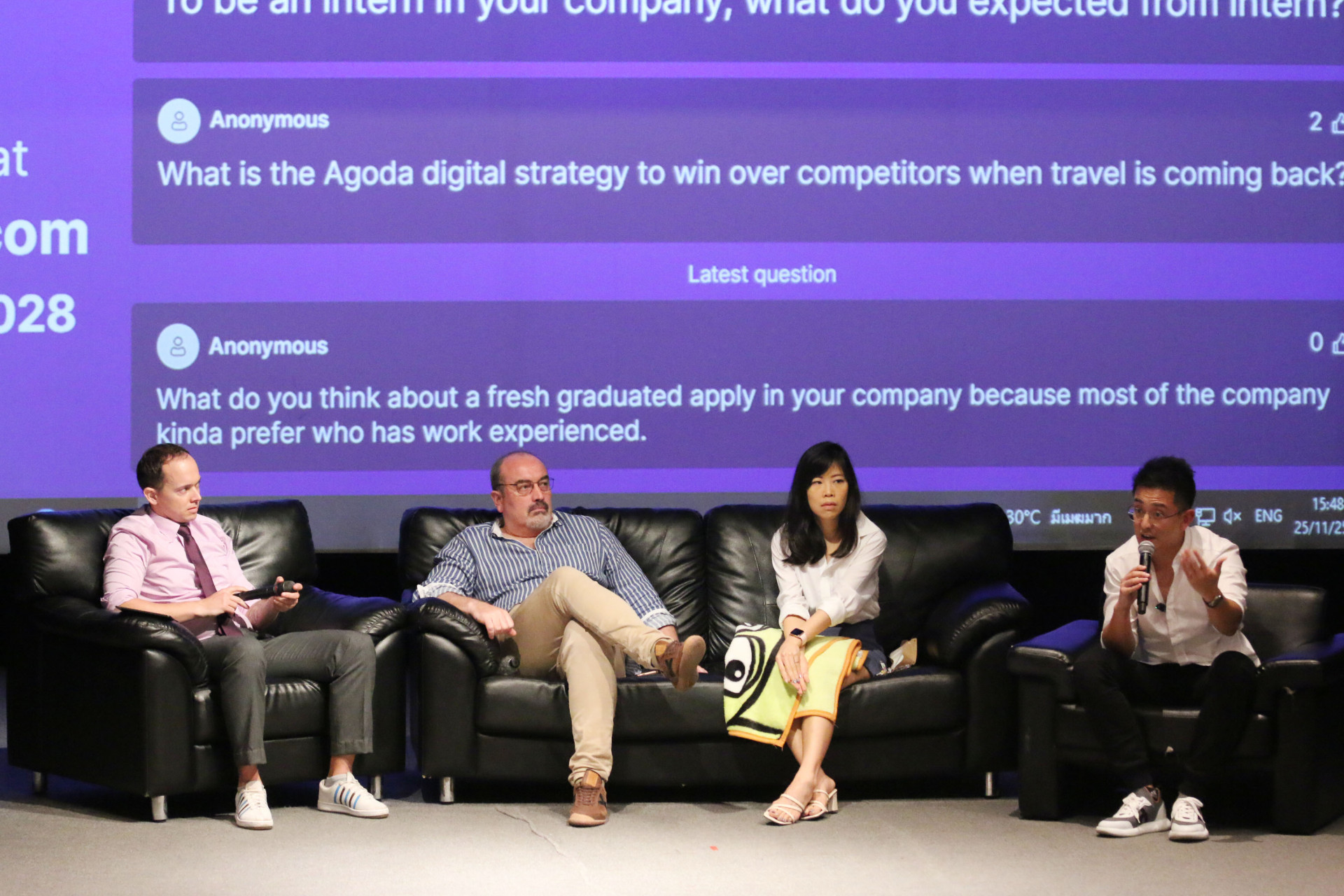 เมื่อวันที่ 25 พฤศจิกายน 2565 โครงการวารสารศาสตรบัณฑิต หลักสูตรนานาชาติ (B.J.M.) จัดโครงการเสวนา "The Digital Strategies of Tomorrow" ณ โรงภาพยนตร์วารสารศาสตร์ คณะวารสารศาสตร์และสื่อสารมวลชน มธ.ศูนย์รังสิต และถ่ายทอดสดผ่าน Facebook Live : JC Thammasat และ BJM Thammasat โดยได้รับเกียรติจาก Mr.Timothy Hughes Vice President Corporate Development at Agoda, Ms.Supisara Bhunthuvanich Senior Global Ecommerce Director (GQ Apparel & SchoolMaskPack), Mr.Khanathat Chowpradith Web3 Marketer at SCB 10x, Ms.Thitikan Bunkool Associate Talent Acquisition Partner at Agoda และ Mr.CK Cheong CEO at Fastwork ร่วมวงเสวนา โดยมี Mr.Sascha H. Funk หัวหน้าสาขาวิชาสื่อศึกษา เป็นผู้ดำเนินรายการ กิจกรรมดังกล่าวจัดขึ้นเพื่อเปิดโอกาสให้นักศึกษาได้รับความรู้และแนวทางใหม่ๆ ทางด้านกลยุทธ์ดิจิทัล ในยุคแห่งเทคโนโลยีที่สื่อดิจิทัลเข้ามามีบทบาทสำคัญต่อการทำงานด้านการสื่อสาร