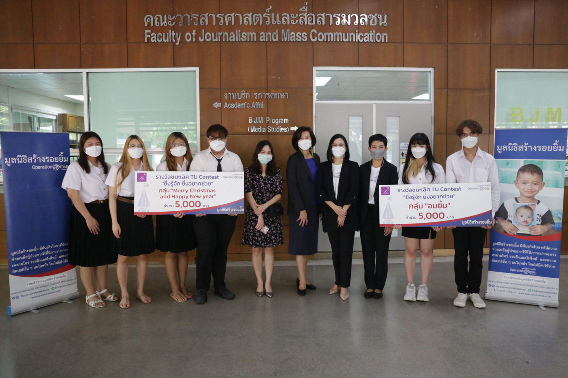 นักศึกษาคณะวารสารศาสตร์และสื่อสารมวลชน มหาวิทยาลัยธรรมศาสตร์ ออกไอเดียคว้ารางวัลชนะเลิศการประกวดแผนการรับรู้และระดมทุนให้กับมูลนิธิสร้างรอยยิ้ม เพื่อเด็กที่ป่วยโรคปากแหว่งเพดานโหว่