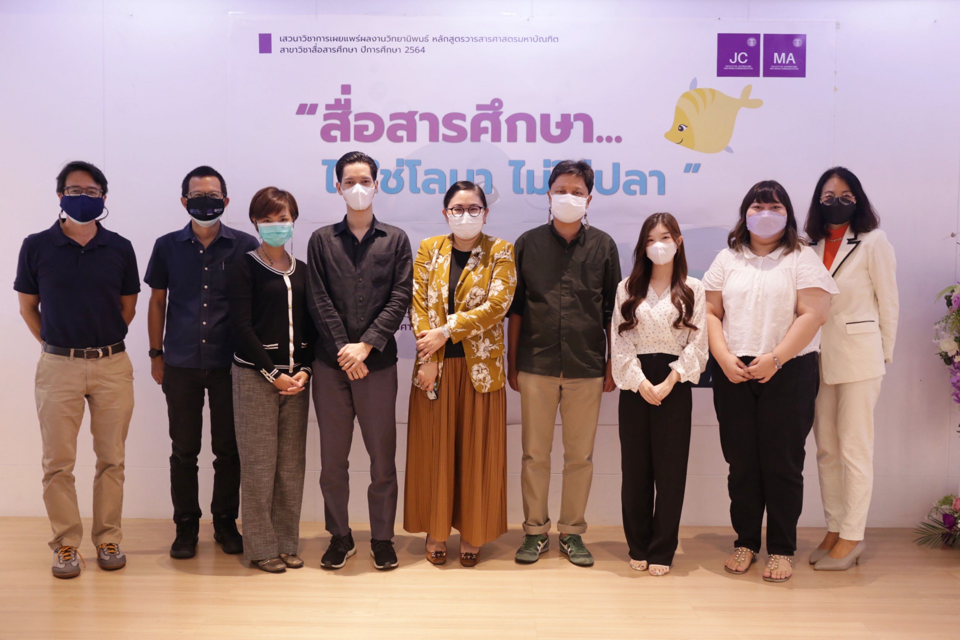 เมื่อวันที่ 26 มกราคม 2565 โครงการวารสารศาสตรมหาบัณฑิต สาขาสื่อสารศึกษา (MA) จัดงานเสวนาวิชาการและการเผยแพร่ผลงานวิทยานิพนธ์หลักสูตรวารสารศาสตรมหาบัณฑิต สาขาวิชาสื่อสารมวลชน ประจำปีการศึกษา 2564 ในหัวข้อ "สื่อสารศึกษา…ไม่ใช่โลมา ไม่ใช่ปลา” โดยมี รศ.กัลยกร วรกุลลัฎฐานีย์ คณบดีคณะวารสารศาสตร์และสื่อสารมวลชน พร้อมด้วย อ.ดร.ดวงแก้ว เธียรสวัสดิ์กิจ ผู้อำนวยการโครงการบัณฑิตศึกษา รศ.ดร.สมสุข หินวิมาน ประธานหลักสูตรวารสารศาสตรมหาบัณฑิต สาขาวิชาสื่อสารศึกษา (MA) และคณาจารย์ในคณะเข้าร่วมงาน ณ ห้อง JM 402 คณะวารสารศาสตร์ฯ มธ. ท่าพระจันทร์