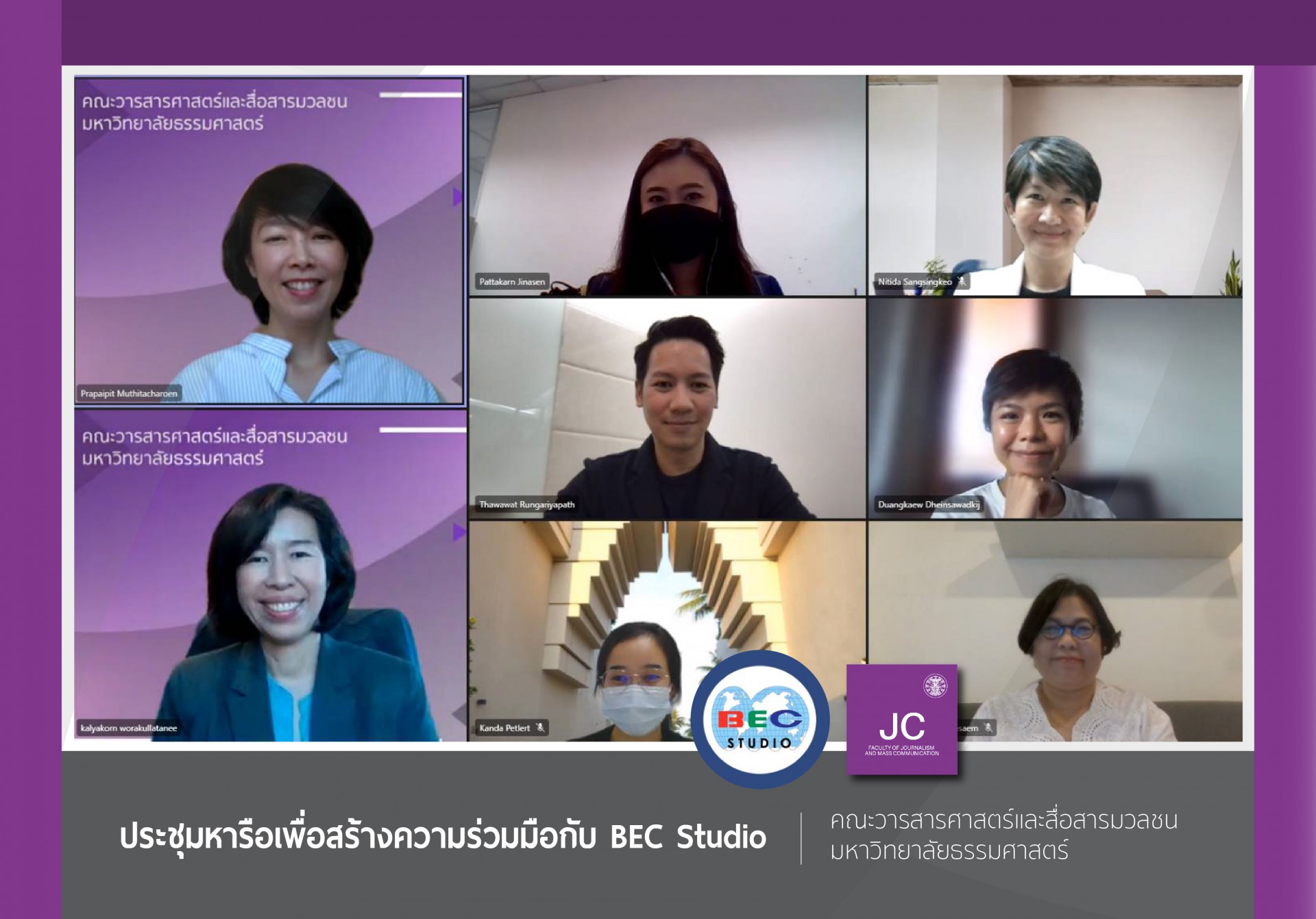 เมื่อวันที่ 24 พฤศจิกายน 2564 รศ.กัลยกร วรกุลลัฎฐานีย์ คณบดีคณะวารสารศาสตร์และสื่อสารมวลชน พร้อมด้วยผู้บริหาร ร่วมหารือแนวทางการทำบันทึกข้อตกลงความร่วมมือกับบริษัทบีอีซีเวิลด์ จำกัด เรื่องการฝึกงานและกิจกรรมทางวิชาการอื่น ๆ ของนักศึกษา โดยจะเริ่มด้วยโครงการ workshop "นักคิดมากเรื่อง กับนักเขียนเรื่องมาก" เพื่อเปิดโอกาสให้นักศึกษาหรือบุคลากรที่มีความสนใจในการเขียนบทละคร ซีรี่ส์ ได้มีโอกาสเข้ารับการอบรมกับนักผลิต นักเขียนที่มีชื่อเสียงของประเทศไทย และโอกาสเข้าทำงานกับ BEC Studio ในอนาคต ผ่านระบบออนไลน์