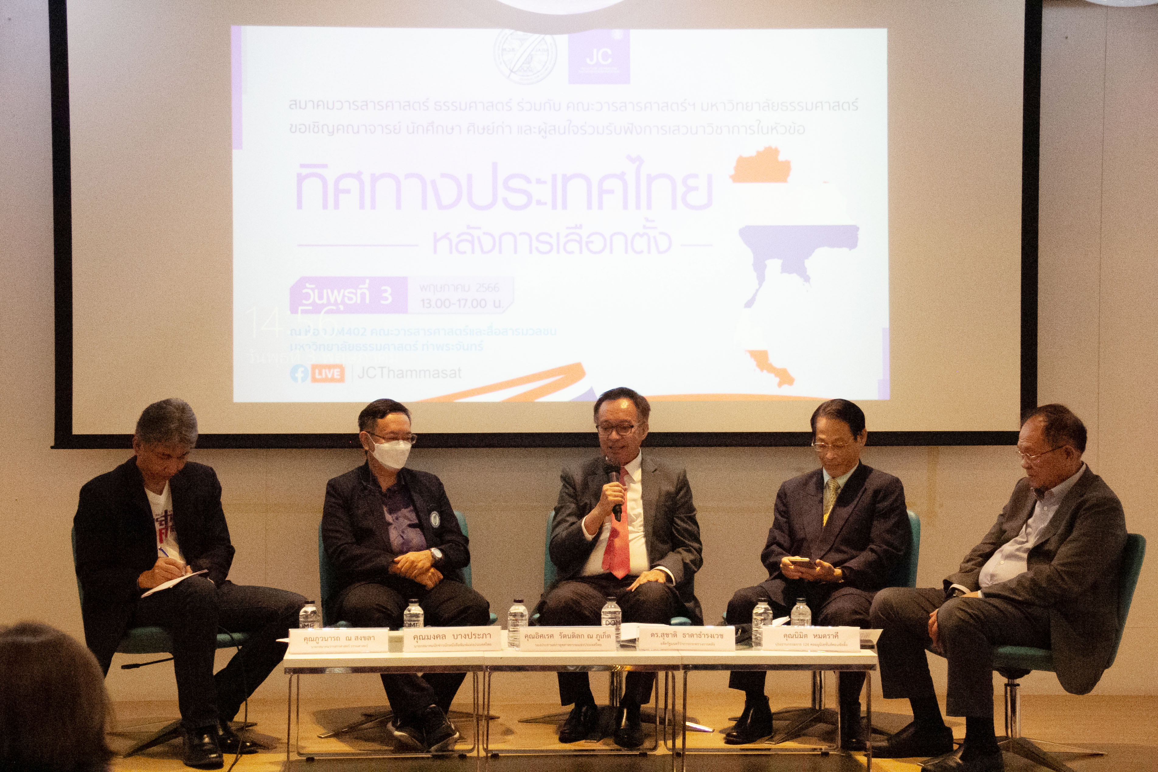 เมื่อวันที่ 3 พฤษภาคม 2566 สมาคมวารสารศาสตร์ ธรรมศาสตร์ ร่วมกับ คณะวารสารศาสตร์ฯ มหาวิทยาลัยธรรมศาสตร์ จัดงานเสวนาวิชาการในหัวข้อ "ทิศทางประเทศไทย หลังการเลือกตั้ง" ณ ห้อง JM402 คณะวารสารศาสตร์ฯ มหาวิทยาลัยรรมศาสตร์ ท่าพระจันทร์ และถ่ายทอดสดผ่านทางเพจ JC Thammasat ภายในงานมีการกล่าวปาฐกถาพิเศษ โดยคุณกร ทัพพะรังสี อดีตรองนายกรัฐมนตรี และ ดร.ดนุช ตันเทอดทิตย์ ผู้แทนกระทรวงอุดมศึกษา วิทยาศาสตร์ วิจัย และนวัตกรรม ในส่วนของวงเสวนาวิชาการ หัวข้อ "ทิศทางประเทศไทย หลังการเลือกตั้ง" ผู้ร่วมเสวนาประกอบด้วย นายสุชาติ ธาดาธำรงเวช อดีตรัฐมนตรีว่าการประทรวงการคลัง นายอิศเรศ รัตนดิลก ณ ภูเก็ต รองประธานสภาอุตสาหกรรมแห่งประเทศไทย นายนิมิตร หมดราคี ประธานกรรมการ บริษัท 124 คอมมูนิเคชั่นส์ คอนซัลติ้ง จำกัด และนายมงคล บางประภา นายกสมาคมนักข่าวแห่งประเทศไทย กิจกรรมดังกล่าวจัดขึ้นเพื่อเป็นเวทีแลกเปลี่ยนเรียนรู้ร่วมกันในเชิงวิชาการ นักธุรกิจ และในฐานะนักสื่อสารมวลชน เพื่อให้ผู้ที่เข้าร่วมเสวนาได้แสดงความคิดเห็นสำหรับเป็นทิศทางของประเทศไทย หลังการเลือกตั้ง ที่จะเกิดขึ้นหลังวันที่ 14 พฤษภาคม 2566 ที่จะถึงนี้