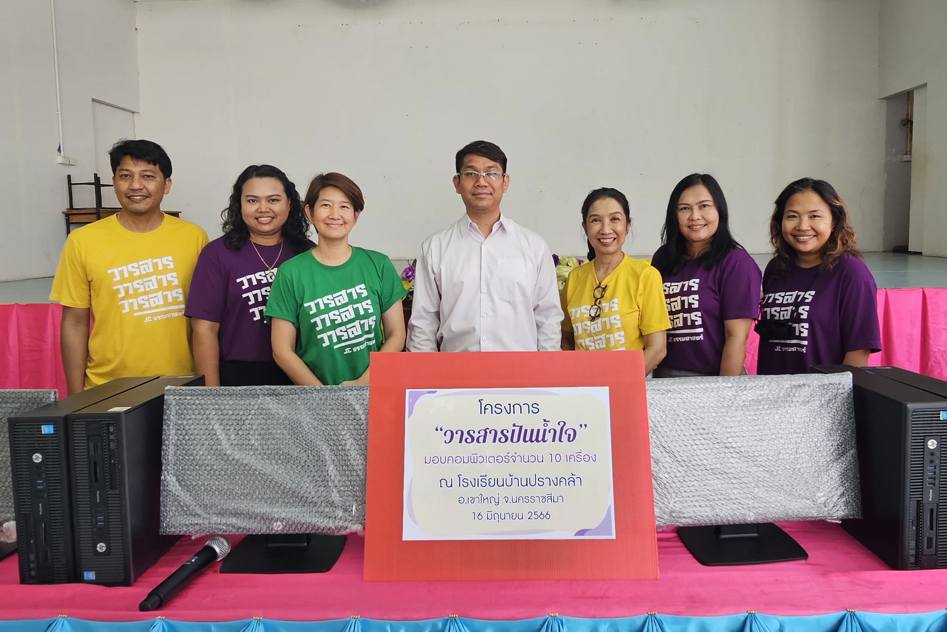 เมื่อวันที่ 16 มิถุนายน 2566 คณะวารสารศาสตร์และสื่อสารมวลชน จัดโครงการ “วารสารปันน้ำใจ” โดยนำเครื่องคอมพิวเตอร์ จำนวน 10 ชุด อุปกรณ์การเรียน และขนม ไปมอบให้แก่ โรงเรียนบ้านปรางคล้า ตำบลหมูสี เขาใหญ่ จังหวัดนครราชสีมา เพื่อให้นำไปใช้ประโยชน์ทางการศึกษา อีกทั้งเป็นการส่งเสริม สนับสนุน ให้นักเรียนโรงเรียนบ้านปรางคล้าได้มีสิ่งสนับสนุนการเรียนรู้เพิ่มเติม การจัดโครงการ “วารสารปันน้ำใจ”ครั้งนี้ มีผู้บริหาร อาจารย์และเจ้าหน้าที่ คณะวารสารศาสตร์และสื่อสารมวลชนเดินทางไปร่วมในกิจกรรม ดังนี้ รองศาสตราจารย์ ดร.นิธิดา แสงสิงแก้ว รองคณบดีฝ่ายวิชาการ อาจารย์ ดร.บัณฑูร พานแก้ว ผู้ช่วยคณบดีฝ่ายการนักศึกษาและศิษย์เก่าสัมพันธ์ อาจารย์ ดร.คันธิรา ฉายาวงศ์ ผู้ช่วยคณบดีฝ่ายวิชาการ ผู้ช่วยศาสตราจารย์ ดร.นันทพร วงษ์เชษฐา และเจ้าหน้าที่งานบริการการศึกษาและวิชาการ เดินทางไปมอบเครื่องคอมพิวเตอร์และอุปกรณ์การเรียนโดยมี นายชิติพัทธ์ ไกรโสดา ผู้ช่วยผู้อำนวยการโรงเรียนบ้านปรางคล้า เป็นผู้รับมอบเครื่องคอมพิวเตอร์และอุปกรณ์การเรียนและขนม ดังกล่าว