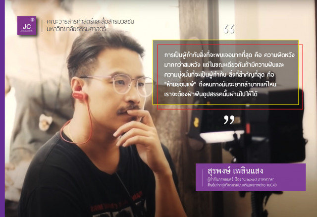อ่านเพิ่มเติมวันนี้เราจะพาทุกคนมาพูดคุยกับ คุณท็อป "สุรพงษ์ เพลินแสง" ผู้กำกับภาพยนตร์โฆษณา ศิษย์เก่าคณะวารสารศาสตร์ฯ กลุ่มวิชาภาพยนตร์และภาพถ่าย รุ่น JC40 ซึ่งมาร...