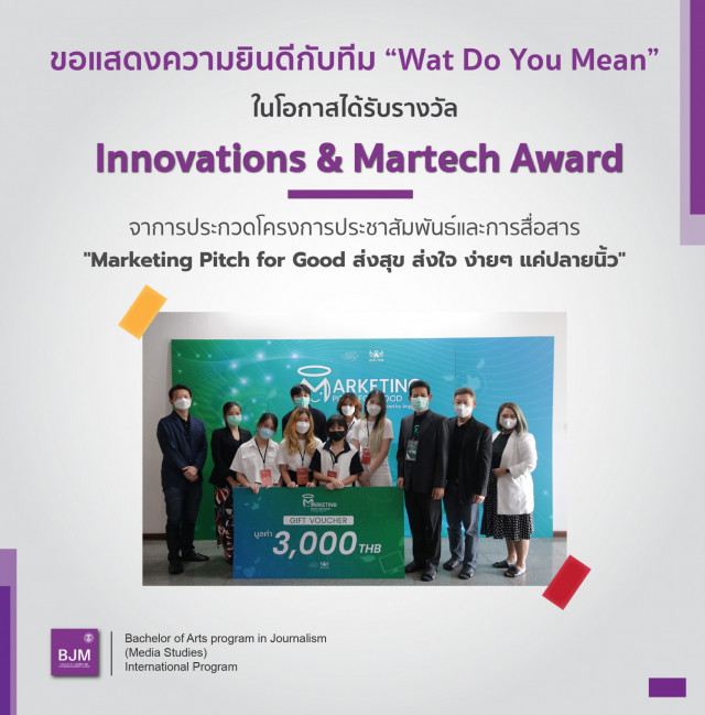 อ่านเพิ่มเติมคณะวารสารศาสตร์ฯ ขอแสดงความยินดีกับนักศึกษาหลักสูตรนานาชาติ (B.J.M.) ทีม "วัด ดู ยู มีน" ที่ได้รับรางวัล Innovations & Martech Award จากการประกวดโ...